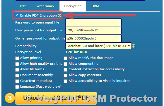 - Upload your original PDF to VeryPDF DRM Protector Online.