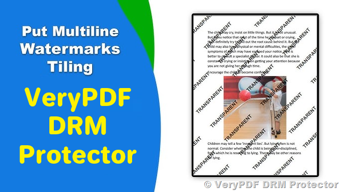 Additionally, VeryPDF DRM Protector automatically centers each line horizontally, ensuring that all lines are aligned neatly in the middle of the page or designated watermark area. The system calculates the text width of each line and adjusts its position to achieve a clean, professional appearance — ideal for company logos, confidentiality notices, or personalized identifiers.
