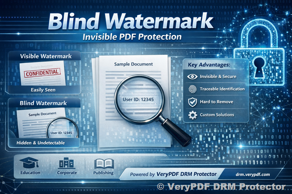In the world of digital documents, protecting your intellectual property is more important than ever. While visible watermarks have been the standard for years, they are not always enough to prevent unauthorized distribution or document misuse. That’s why VeryPDF DRM Protector now introduces Blind Watermark technology, an invisible yet powerful way to secure your PDFs.