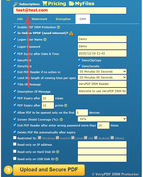 - Customizable DRM settings: Apply different levels of restrictions, watermarks, expiration dates, and usage limits as needed.