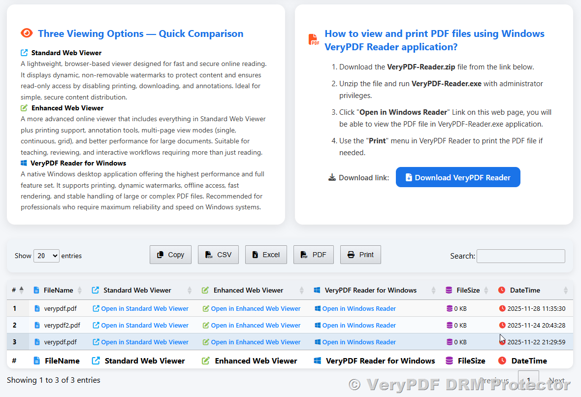 VeryPDF DRM Protector offers complete flexibility and control for protecting PDF documents, whether you are managing a single file or thousands of files. The platform supports multiple workflows, giving you the freedom to choose the approach that best fits your technical expertise, organizational needs, and security requirements.