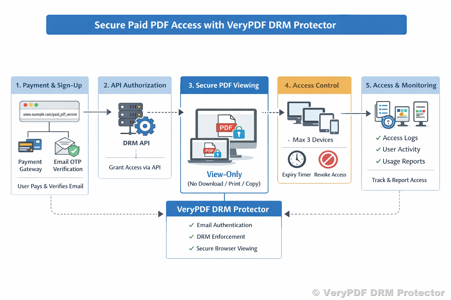 In today’s digital world, protecting PDF content while offering paid access is a common requirement for businesses, educational institutions, and content creators. VeryPDF DRM Protector provides a secure, browser-based DRM solution that allows you to control who can view your PDFs, prevent unauthorized sharing, and enforce strict read-only policies.