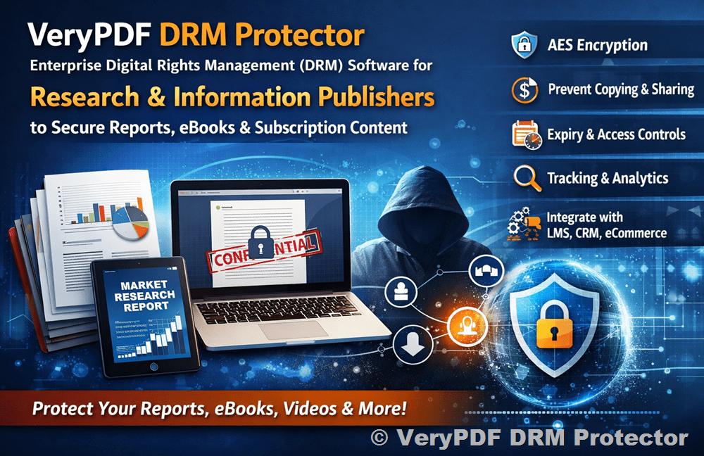 VeryPDF DRM Protector — the complete DRM solution for the Research & Information industry.
