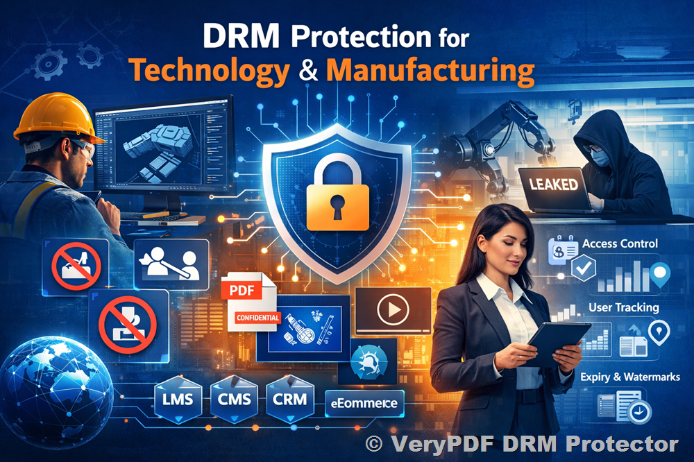 In today’s competitive Technology & Manufacturing landscape, your digital content, ranging from proprietary designs and process documents to training manuals and multimedia resources, is highly valuable. Without proper protection, your content is vulnerable to piracy, unauthorized sharing, or misuse. VeryPDF DRM Protector provides a comprehensive digital rights management (DRM) solution, enabling companies to protect their intellectual property while easily distributing content securely to authorized personnel, partners, or clients.