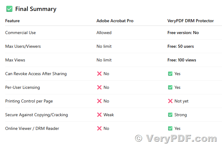 6. How Is VeryPDF DRM Different from Adobe Acrobat Pro’s PDF Restrictions?