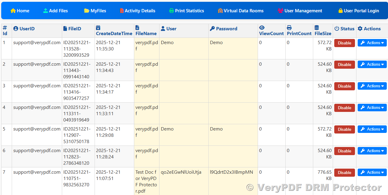 • VeryPDF DRM Protector MyFiles Actions Menu: Complete Guide to Secure PDF Management, Viewing, Sharing, and DRM Features