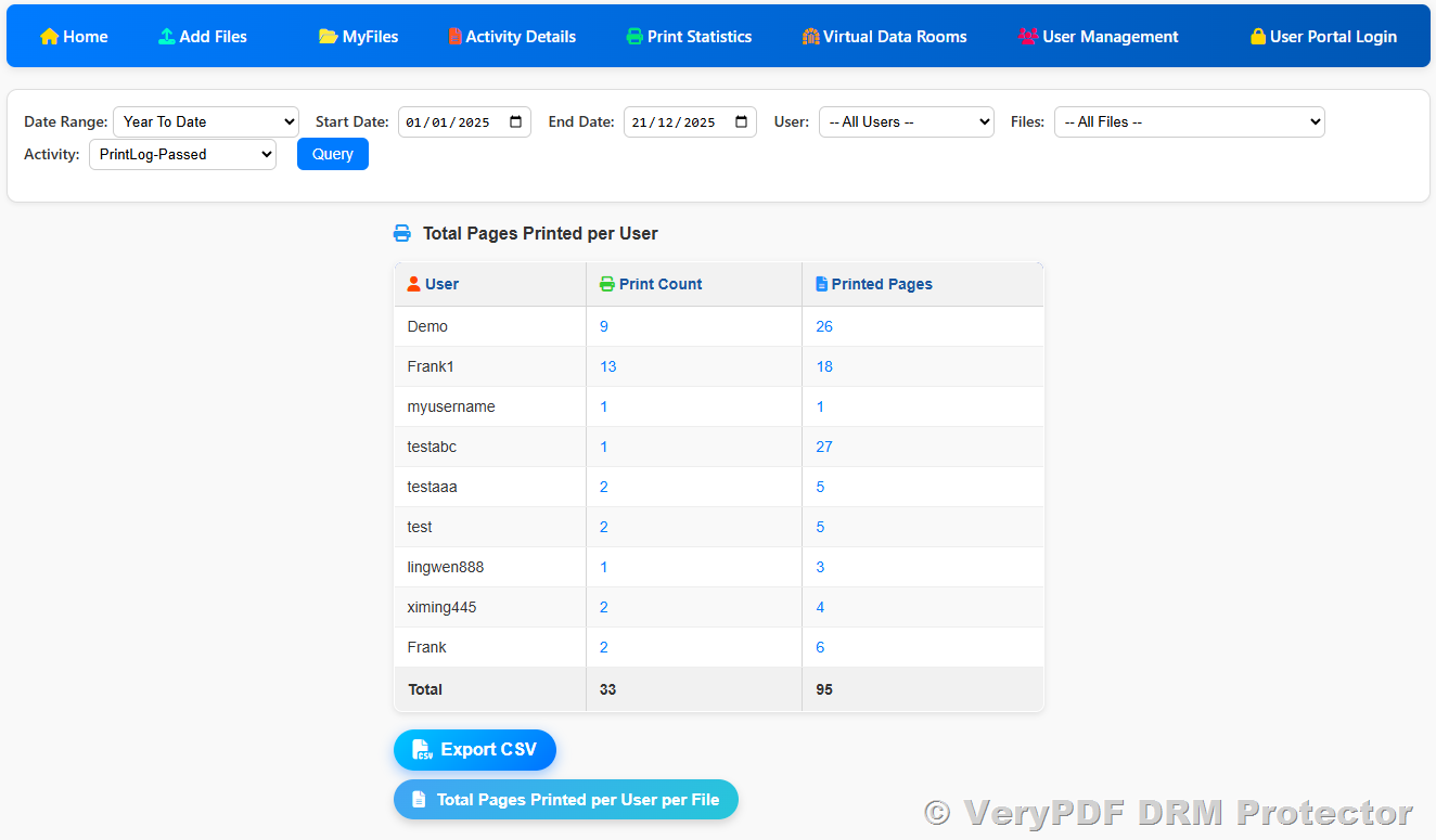 This user manual is designed to help administrators and technical staff fully understand and utilize the VeryPDF DRM Protector Management Console, including protected PDF file management, user and permission control, access and print auditing, print statistics, Virtual Data Room (VDR) management, and automated batch PDF DRM protection.